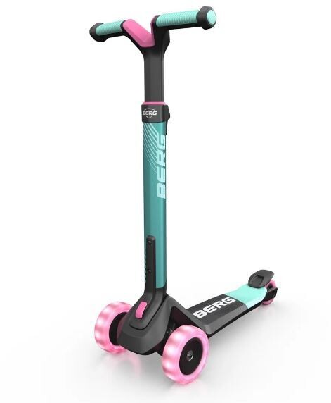 Zložljiv skiro turkizne barve s svetlečimi kolesi